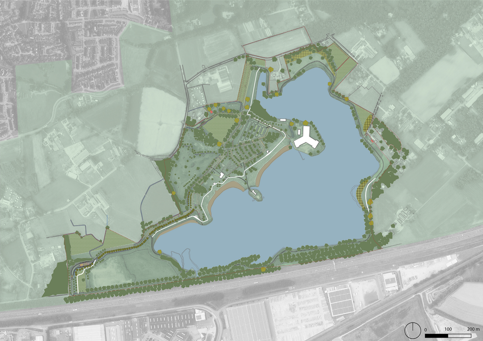 - we plaatsen een kunstwerk met de naam van het recreatiegebied, zichtbaar vanaf de snelweg A1;